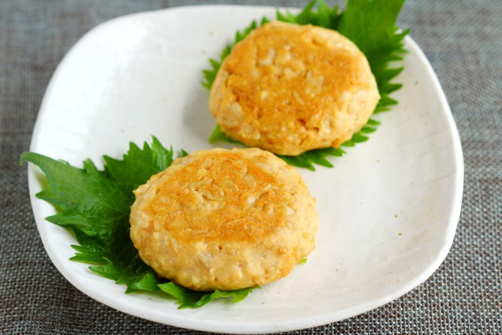 ひき肉の代わりに炊いたオートグローツを使い、水切り不要で扱いやすい厚揚げと合わせたベジハンバーグ。味付けもしてあるのでそのままいただけます。お好みで大根おろしをかけるのもおすすめです。
