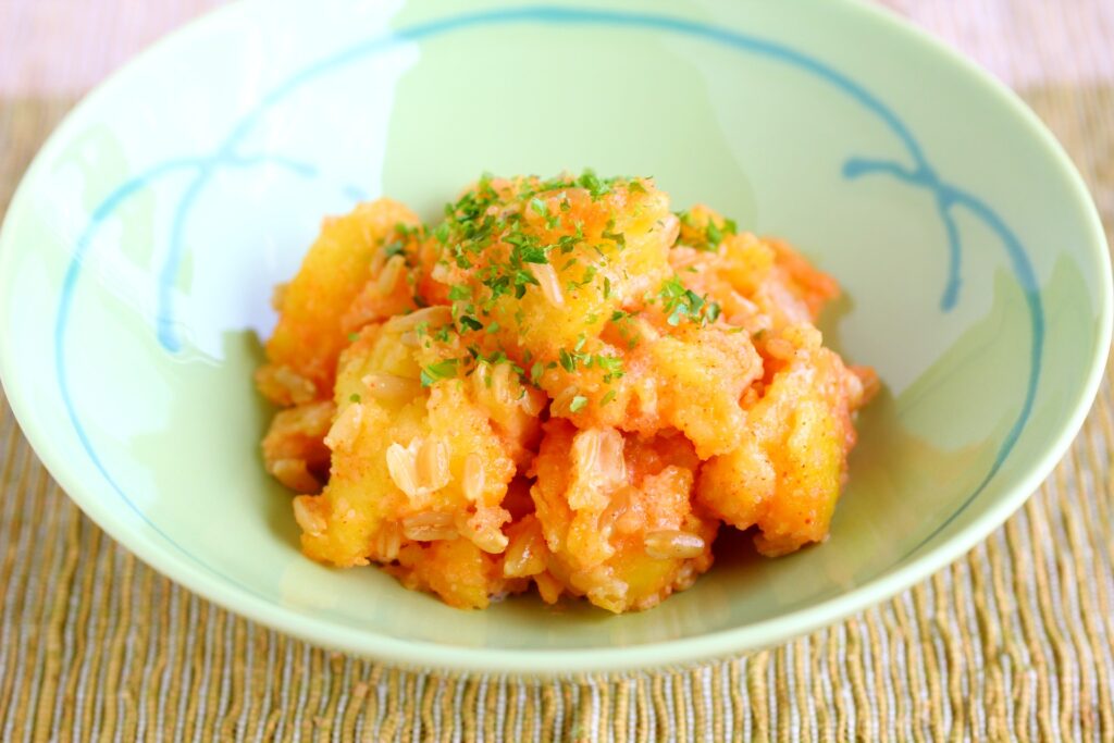 ②をスプーンで粗くつぶし、①、マヨネーズ、明太子を和える。