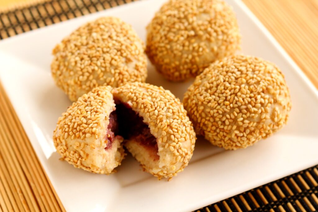 クイックオーツで作れるごま団子。中はあんこやごま餡などお好みで!揚げないのでヘルシーです。