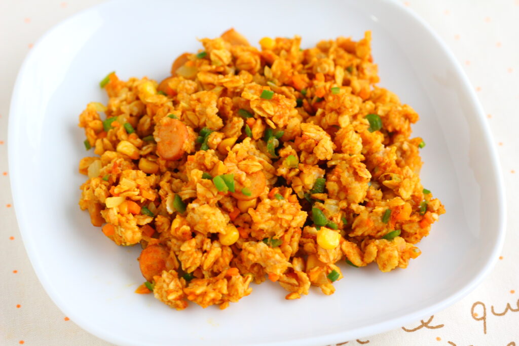 フライパンで作れる簡単ピラフ。ロールドオーツをごはん化して作るのでお手軽です!