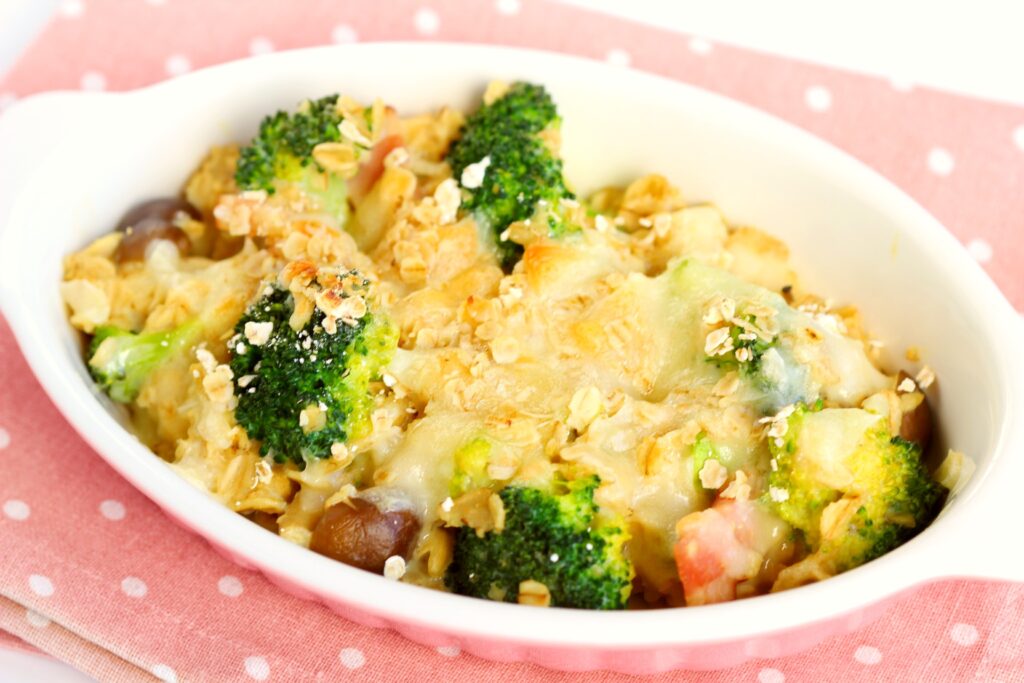 豆乳とオートミールで自然にとろみがつくのでホワイトソース不要!