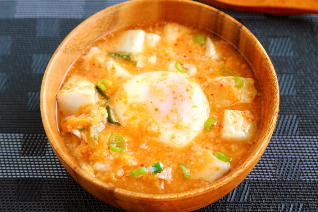 クイックオーツでさらっといただける、キムチ・豆腐・玉子のピリ辛スープ。夏から冬まで、季節問わず美味しくいただけます。