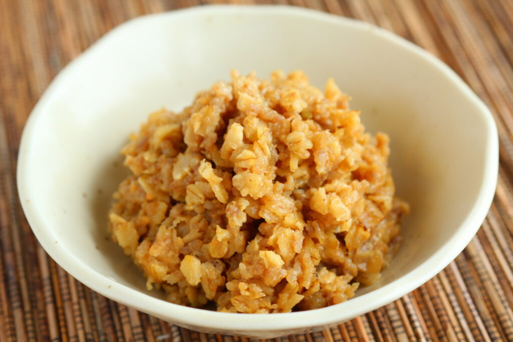 万能常備菜の肉味噌。お肉と約同量の米化オートミールを加えてヘルシーに食べ応えをアップしました。