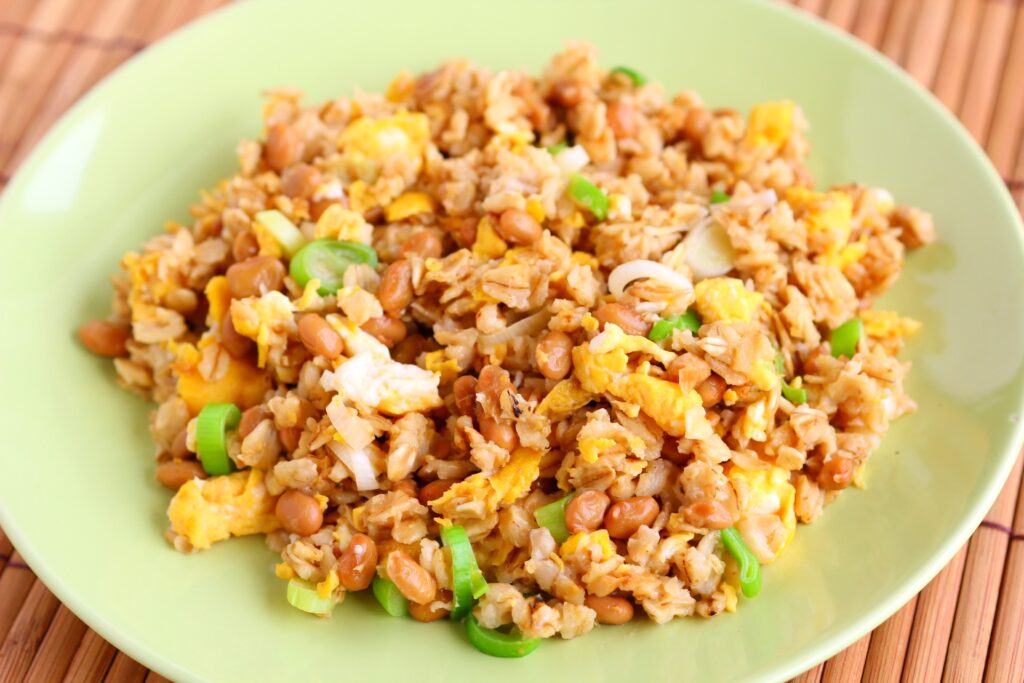 オートミールと納豆でパラパラ香ばしいチャーハン。