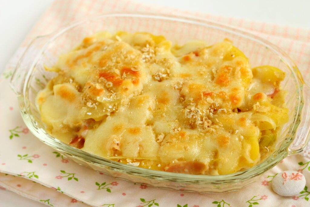 クイックオーツでとろみを出したポテトグラタン。豆乳、牛乳お好みで簡単に作れます。